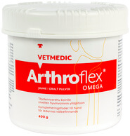 15 kg vertailukoiralle annettaisiin annoksella 40 mg/kgEP Arthroflex Omega jauhetta 3 grammaa päivässä, eli hieman vajaa teelusikallinen. Silloin 400 gramman purkki riittäisi alle 4,5 kuukautta.