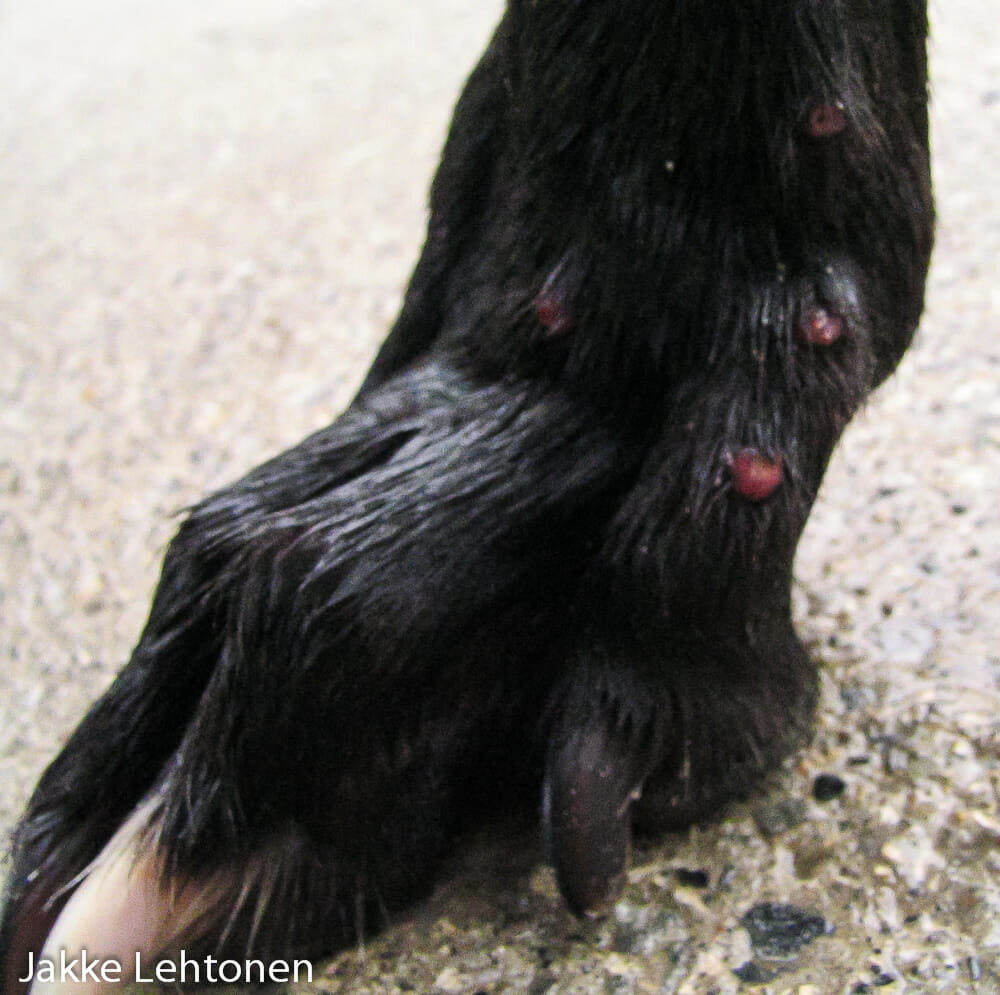 Suomessa yleisimpiä ovat ”suusyylät”, mutta koiratarhojen vetosuorien myötä Suomeenkin on pesiytynyt toinen ilmenemismuoto. Virus tarttuu näiden hiekasta ihon pienen vaurion kautta ja ilmestyvätkin jalkojen alaosaan, kintereen ja ranteen alapuolelle. Kivuliain papilloma on silloin kun se kasvaa kynsinauhojen alueella. Sen sijaan räpylöissä ja varpaissa kasvava aiheuttaa yleensä epämukavuudestaan huolimatta pelkästään lievää ontumista. Samaan koiraan kasvaa yleensä viikon sisään useampi paukama, jopa kymmenkunta.