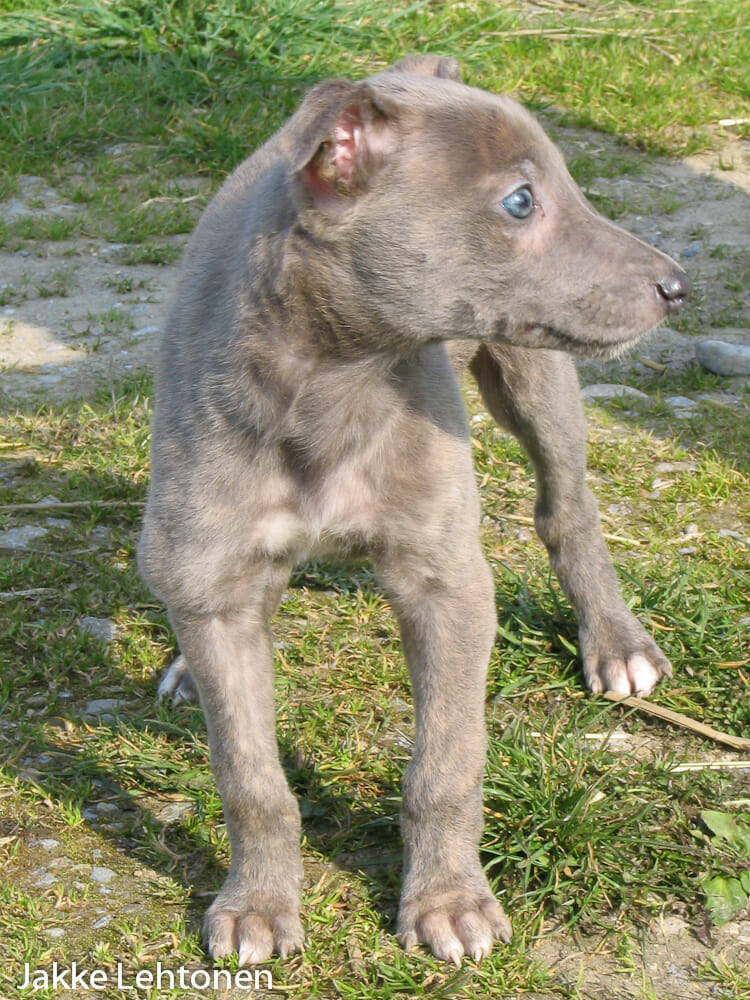 Meille tuli whippetin pentu. Ihan kuin greyhound, mutta pienempi. Hauska tapaus, ja jos suurin osa vipukoita on tämän tapauksen kaltaisia, niin en ollenkaan ihmettele niiden suosiota: greyhound taskukoossa.